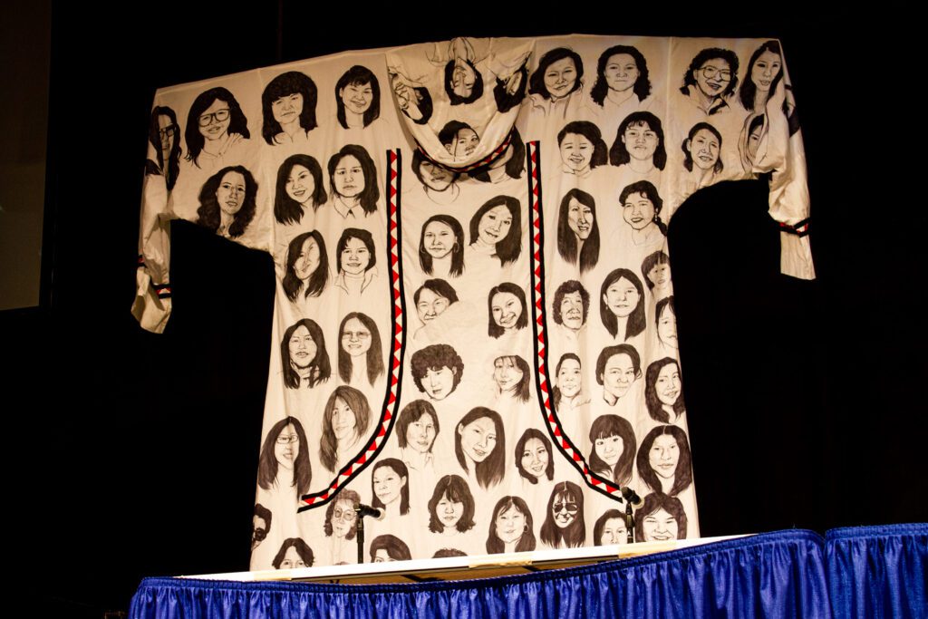 Image at top: A 12-foot qaspeq with portraits of murdered indigenous women stirred debate at this year’s AFN.