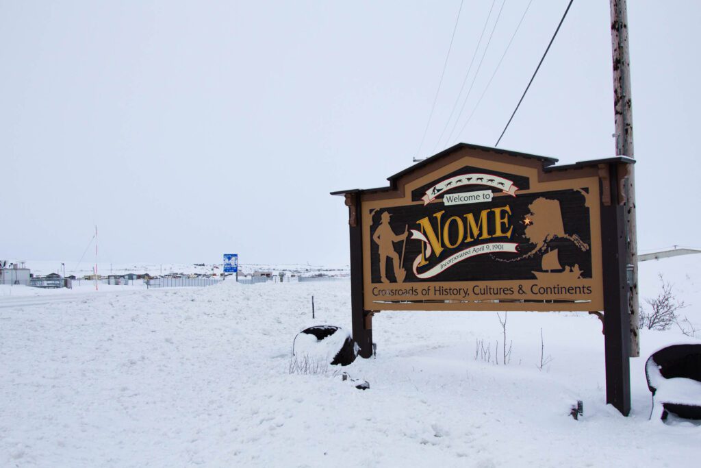 Image at top: The “Welcome to Nome” sign in winter time. Photo by Brisa Alarcon, KNOM (2021).