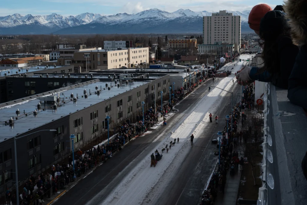 Despite the temperatures, the panting dogs raced the trail as residents lined city streets cheering, high-fiving mushers and yelling for dog booties. The event was shorter this year not only because of the shorter route, but also because of the number of teams: the field of mushers is tied for the smallest in history, with 17 veterans and 16 rookies.