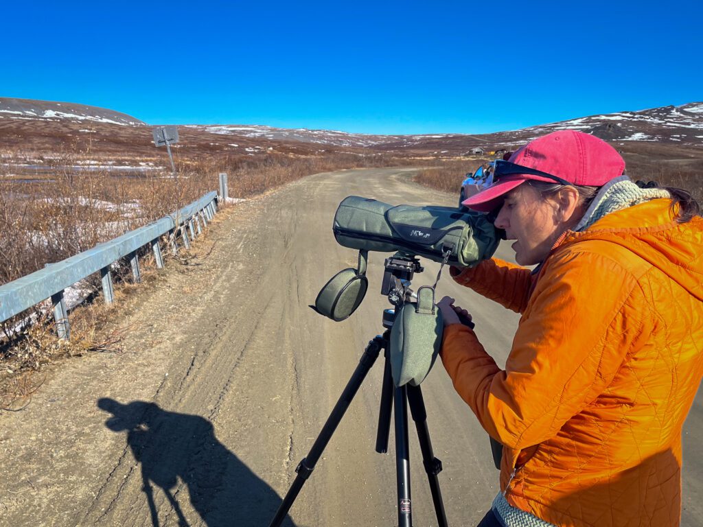 Birding season is upon us! Each spring in Nome, tourists visit for a short season in hopes of viewing a number of different migratory bird species passing through western Alaska. Usually packed in white 18-passenger vans with a guide, birders travel Nome’s extensive road system with their eyes to the skies.
