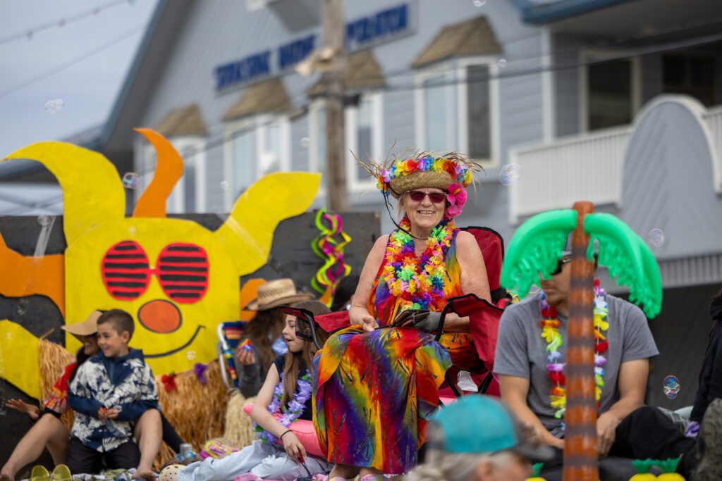 By 11:00, Front Street was lined with people of all ages. Fire trucks buzzed as a procession of colorfully-decorated vehicles slowly made their way through town. Children frantically waved their hands in the air as they clamored for candy being thrown from the vehicles.